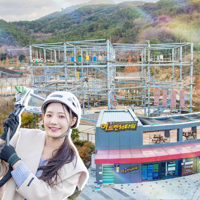 통영케이블카와 루지 인근에 위치한 통영어드벤처타워는 15m 높이의 육각형 타워에서 96개의 미션을 수행하는 익스트림 스포츠 체험시설이다. 유럽 안전 규격(EN15567) 인증을 획득해 안전성을 공식적으로 검증받았다.