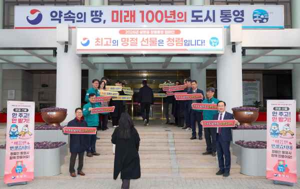 통영시(시장 천영기)는 설 명절을 앞두고 공직 사회 전반에 청렴 의식을 확산하고 공직자 행동강령 준수를 당부하기 위해 지난 10일 시청 1청사 현관에서 ‘2026년 설 명절 대비 청렴 통영 캠페인’을 실시했다.