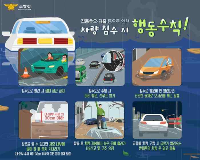 “급류에 갇힌 차, 탈출법은? 통영소방서가 알려드립니다”