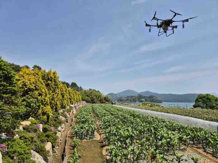 통영시, 한산 찰옥수수 드론 항공 방제 실시