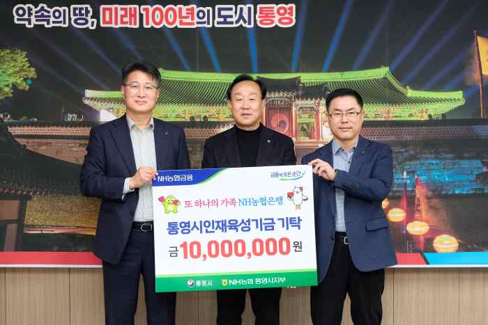 NH농협은행 통영시지부(지부장 하상우)는 지난 25일 통영시(시장 천영기)에 인재육성기금 1,000만 원을 기탁했다.통영시지부는 통영시 법인 카드·공무원 복지 카드 사용액에 따른 적립금을 포함해 매년 꾸…