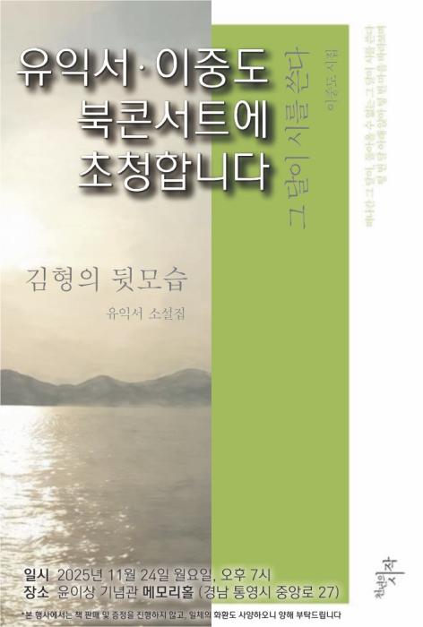 한국 문학의 독특한 영역을 개척하는 작가, 소설가 유익서와 시인 이중도가 오는 11월 24일(월) 오후 7시, 윤이상기념관 메모리홀에서 합동 북콘서트를 연다. 이번 무대는 통영이라는 지역적 배경을 넘어, 두…