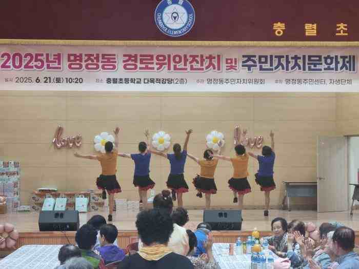 명정동주민자치위원회(위원장 이준호)는 지난 21일 충렬초등학교 다목적강당에서 ⸢2025년 명정동 경로위안잔치 및 주민자치문화제⸥를 개최했다.
