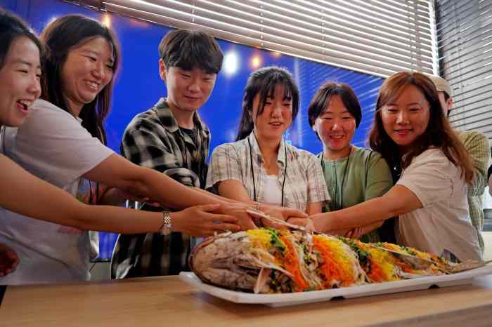 지난 11일 동피랑 마을 섬바다 음식학교 캠퍼스에서 열린 개교식은 일반적인 케이크 대신 통영을 대표하는 전통 음식 ‘도미찜’을 함께 자르는 퍼포먼스로 시작됐다. 참여 청년들이 도미찜을 자르며 지역 공동체의 상징적인 의미를 나누는 장면은 인상적이었다.