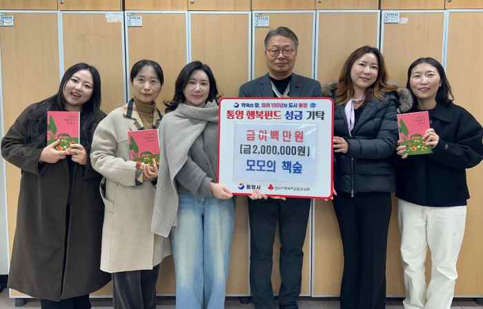 모모의 책숲(디엘본아파트 독서모임)은 지난 23일 통영시(시장 천영기)에 산문집 『모모의 책숲에서 만나요』 판매 수익금 200만 원을 이웃 돕기 성금으로 기탁했다.