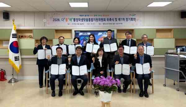 경상남도통영교육지원청(교육장 조은주)은 4월 9일(목) 통영교육지원청 북카페에서 복합적 위기 상황에 처한 고위기 학생에 대한 다각적인 지원 방안을 모색하기 위해 ‘2026 통영학생맞춤통합지원위원회 위촉식 및 제1차 정기회의’를 개최했다.