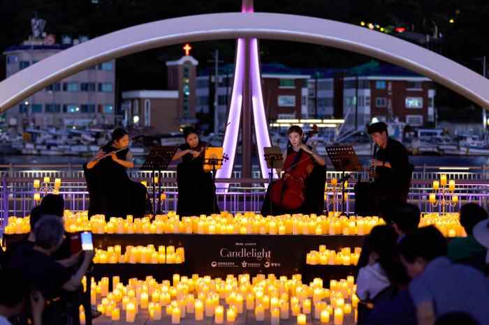 행사의 하이라이트인 야간관광 특화 콘텐츠 ‘캔들라이트 콘서트’에서는 바이올린, 첼로, 클라리넷, 플루트로 구성된 ‘도담 앙상블’이 출연해 올드보이, 기생충, 오징어 게임 등 대중에게 익숙한 한국 영화 음악을 연주했다. 전 좌석을 꽉 채운 관객들은 밤바다를 배경으로 울려 퍼진 선율에 매료되었고, 현장에는 뜨거운 박수와 환호가 가득했다. 특히, 이번에 새롭게 조성된 강구안 디지털 사이니지를 통해 공연이 생중계되며 더 많은 관람객이 편하게 공연을 관람할 수 있었다.